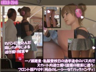 3DCG 一ノ瀬廻里・私服登校日の通学途中のバス内でスカート内逆さ撮り盗撮の被害に遭う:フロント版PV09(純白のレーシーなTバックパンティ)【エロンロン】d_743584